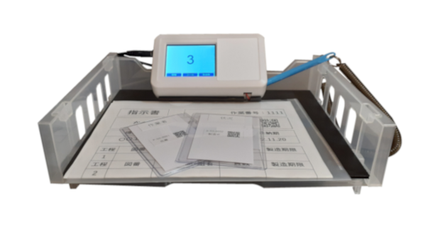 ICタグを置けば作業開始、取れば完了。タッチパネルで完成数や不良の数を報告することもできます。
